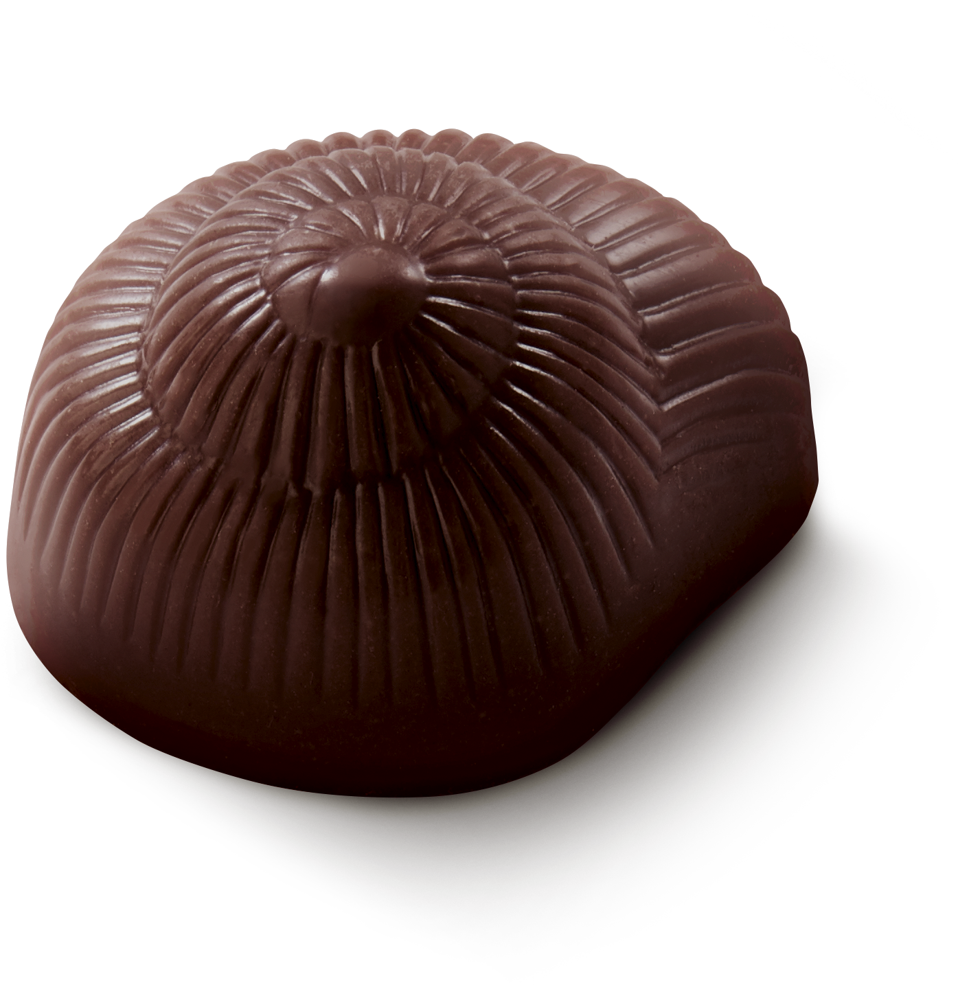 Escargot - cœur au praliné et éclats de noisettes caramélisées, chocolat noir 70%