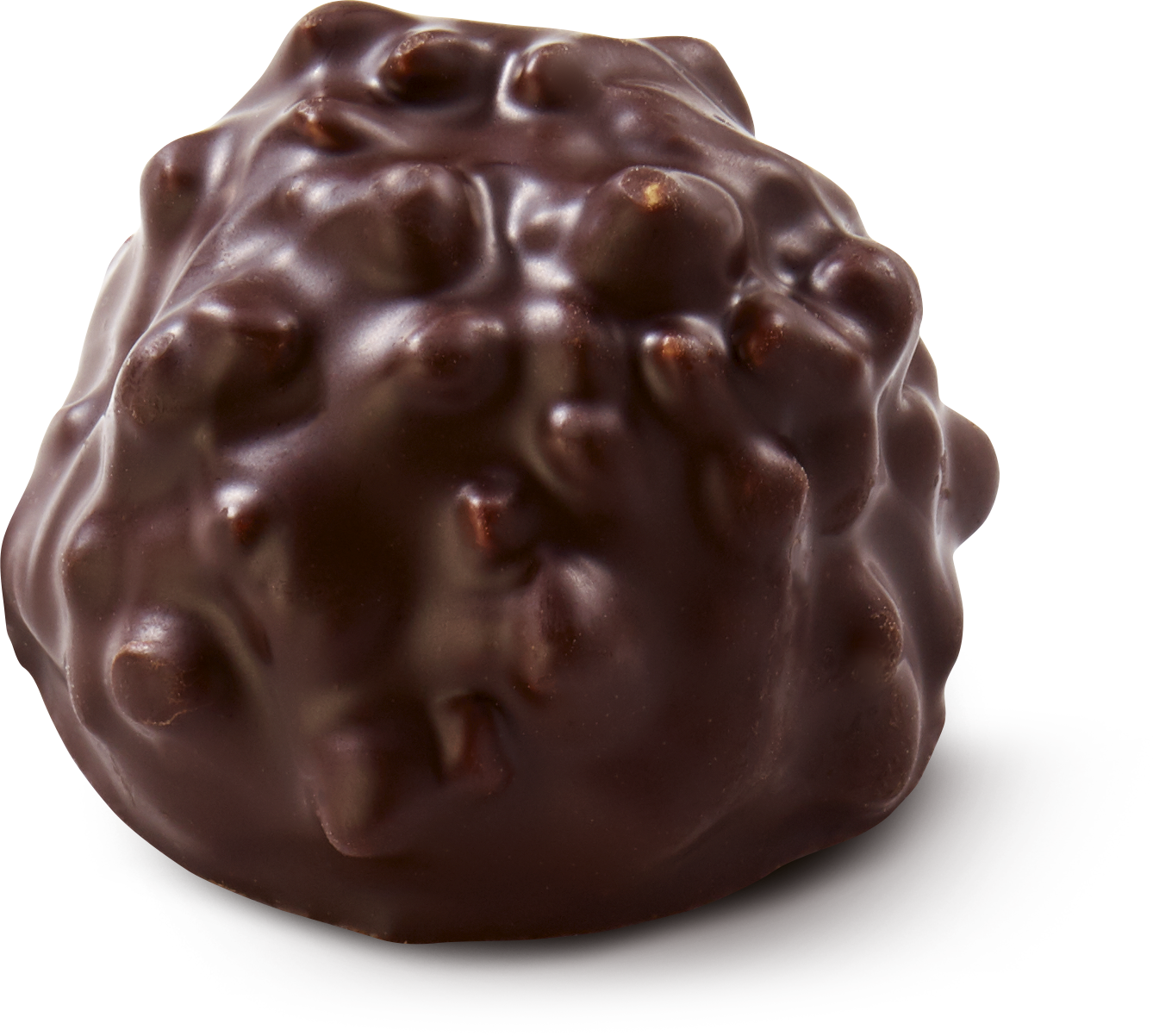 Rocher - Cœur au praliné et éclats d'amandes caramélisées, chocolat noir 70%