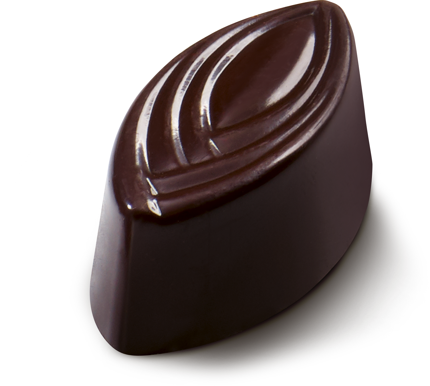 Cœur au praliné amande aux douces notes de framboise et éclats d'amandes, chocolat noir 70%