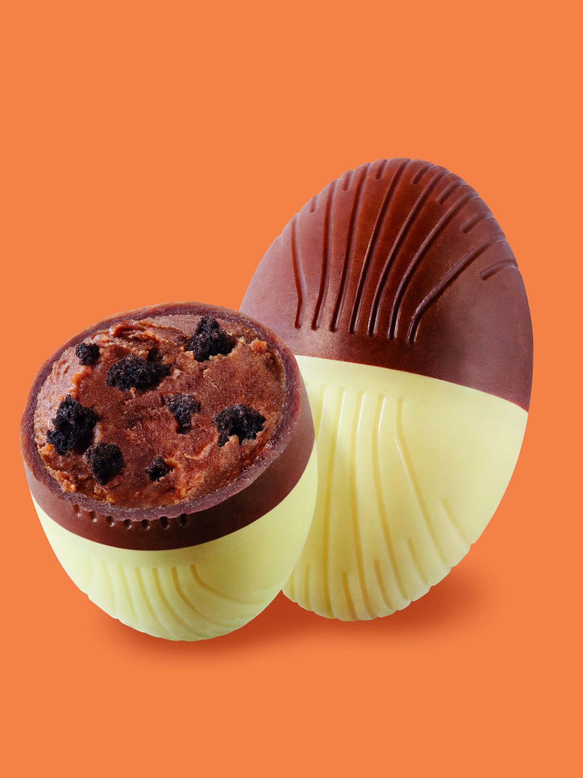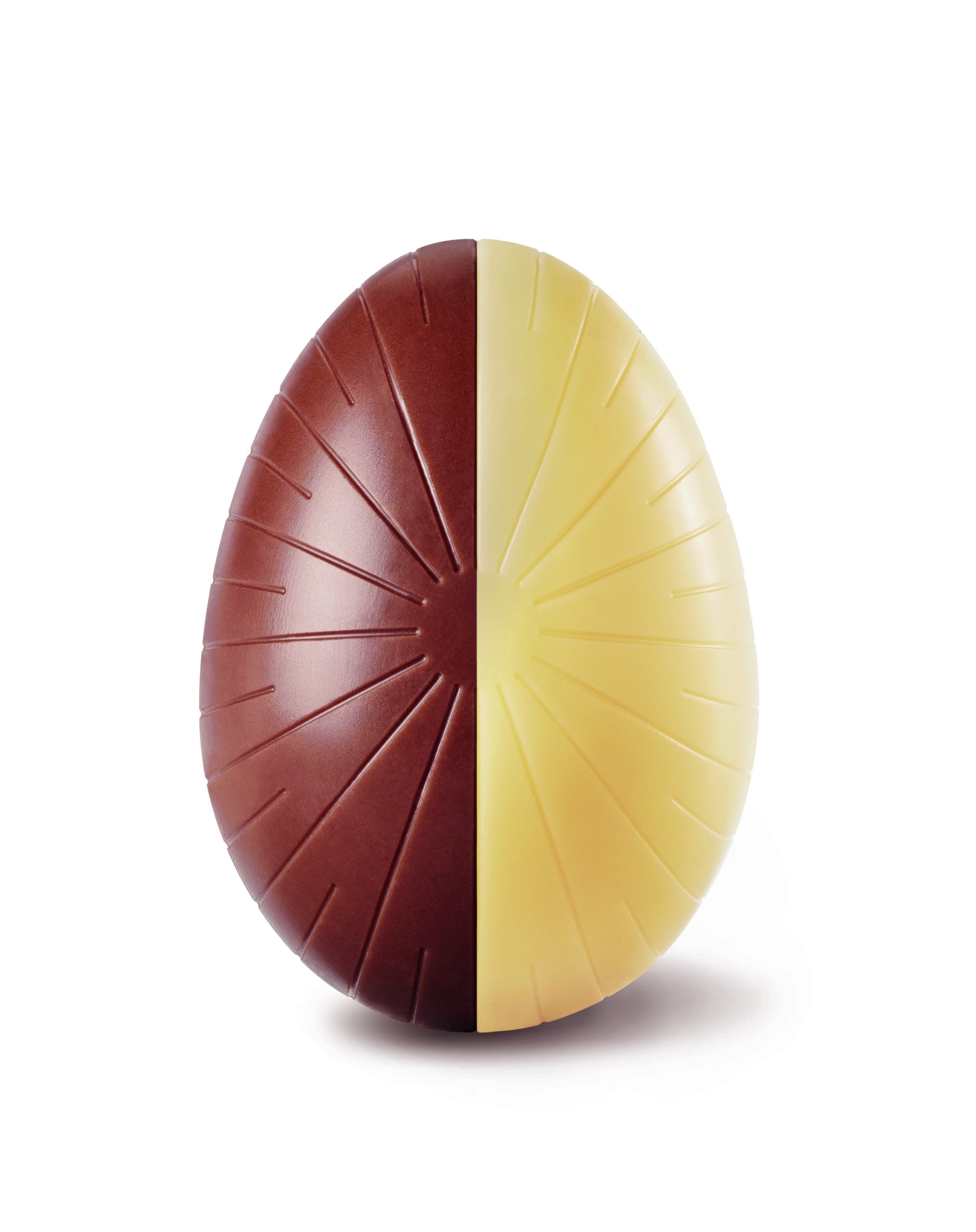 L'œuf creux au chocolat au lait et chocolat blanc.